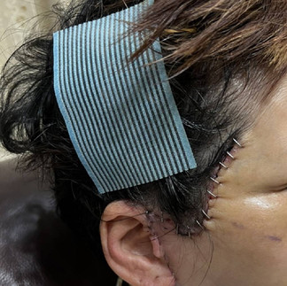 รอยกรีด : จะเริ่มตั้งแต่ติ่งหูด้านหน้า ยาวประมาณ 3เซนติเมตร